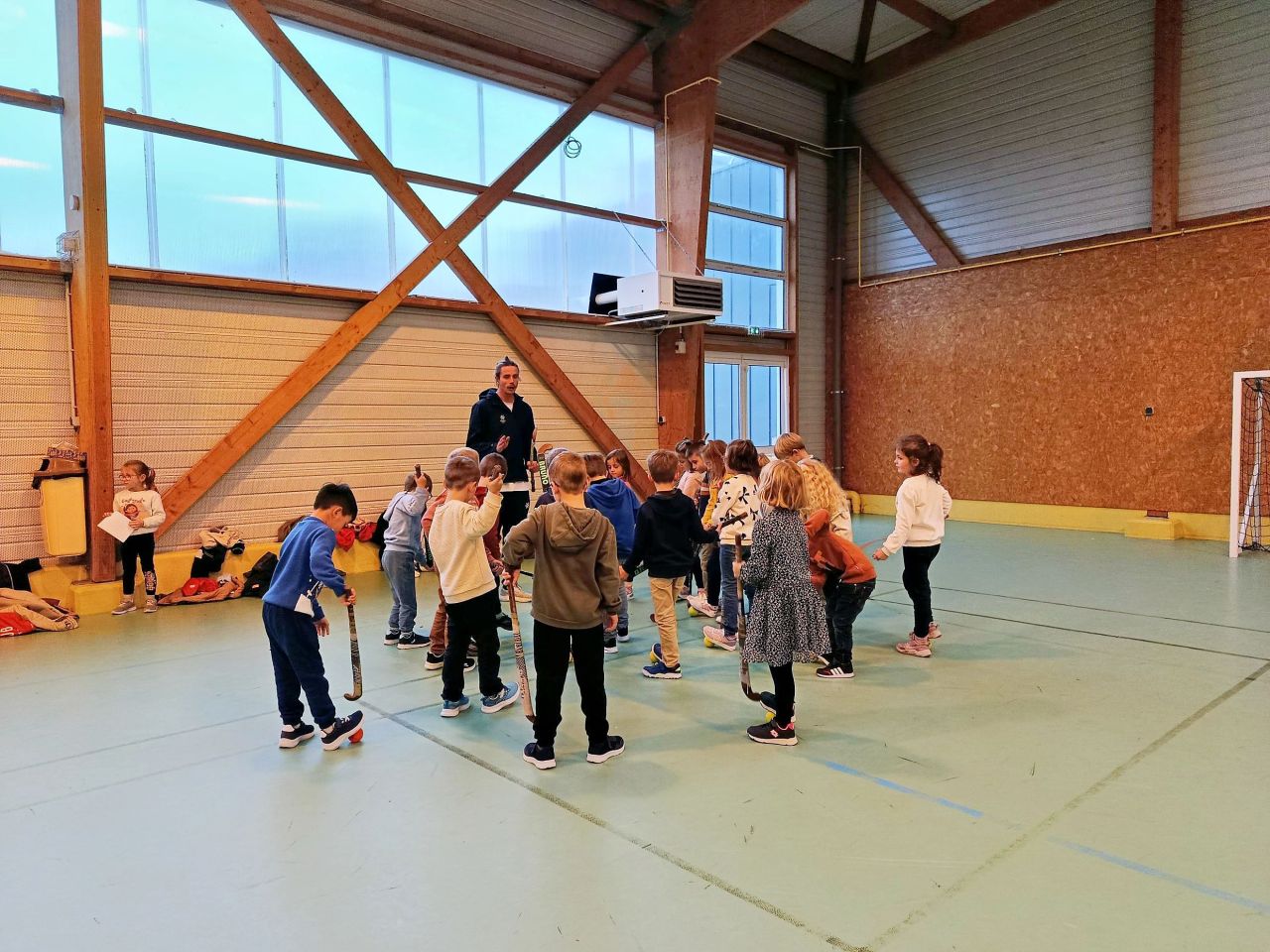 Comme chaque année, nos élèves de CP et CE1 ont la chance de découvrir le Hockey grâce au partenariat avec le Hockey Club Cauchois. Ce matin nos élèves de CPC ont pu découvrir les règles et le maniement de la crosse, grâce à Arthur coach et joueur du club.