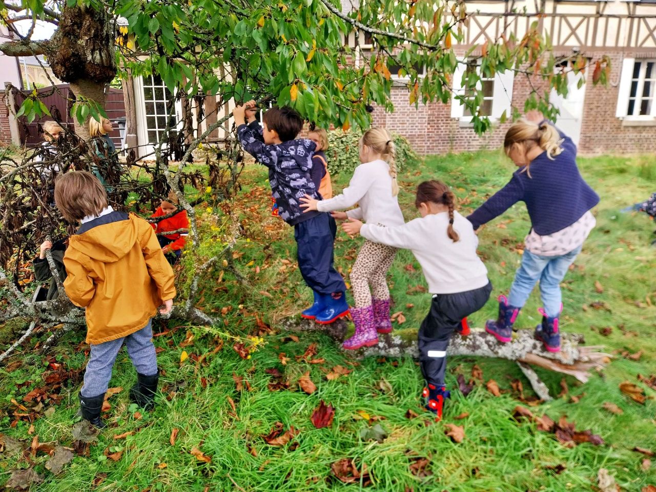 Nos élèves de GSA ont participé à l'école du dehors, ils ont pu découvrir les arbres fruitiers et les fruits d'automne, réalisé des Land art et surtout faire des mathématiques, notamment de la numération, c'est bien plus marrant dans la nature!